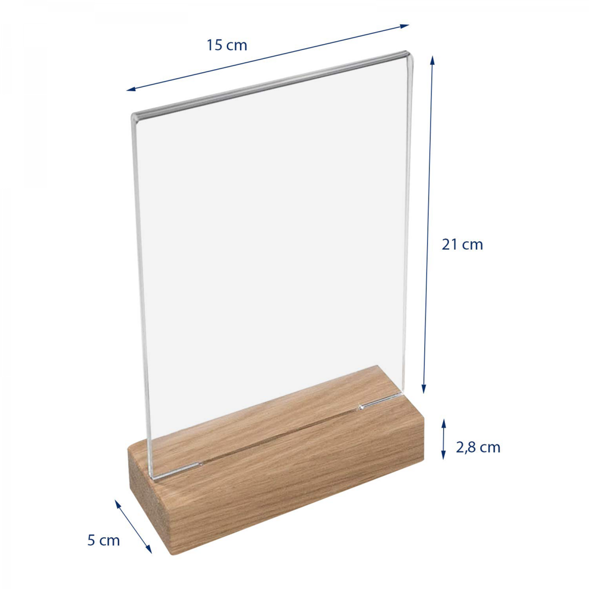 Réutilisable à l’infini, le porte menu acrylique avec socle en bois est parfait pour la présentation de tous types de menus ou d’informations que vous pouvez insérer entre les deux plaques transparentes.