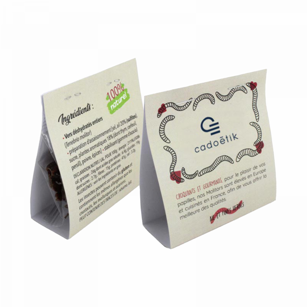 Vous cherchez un goodie original et mémorable pour vos clients, prospects ou collaborateurs ? Chez Cali advise, nous vous proposons les insectes comestibles déshydratés. Ces snacks grillés et aromatisés, très tendance et écologiques, constituent un cadeau publicitaire innovant qui laissera une impression durable. Disponibles en petites quantités pour des événements ou en grande série pour vos campagnes marketing, ils séduisent par leur originalité et leur aspect fun.